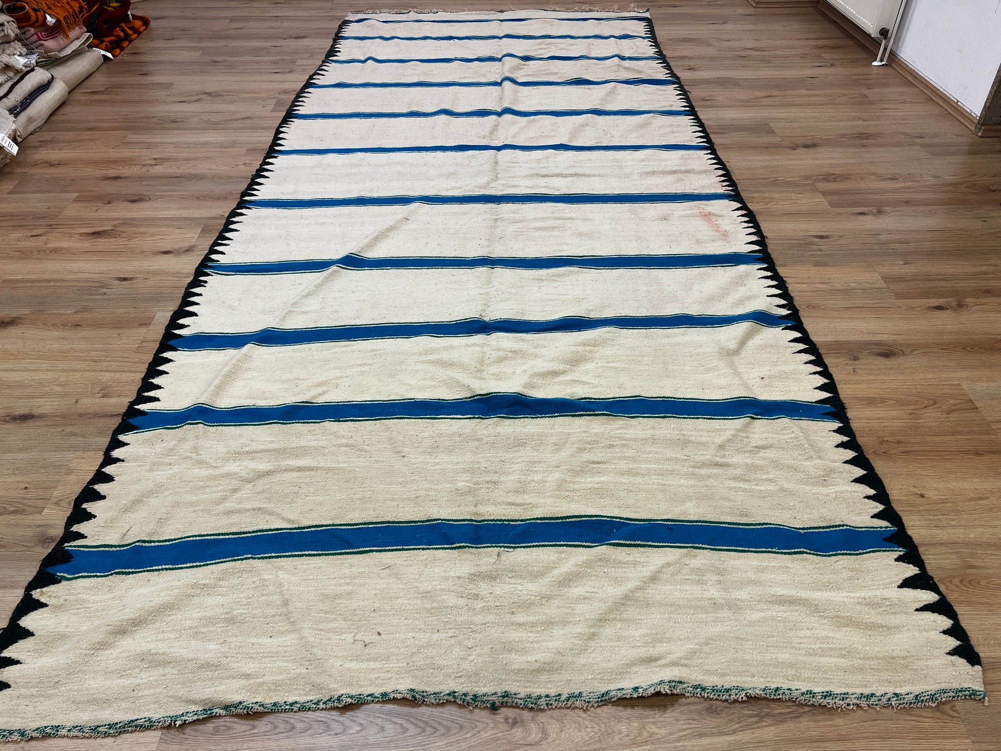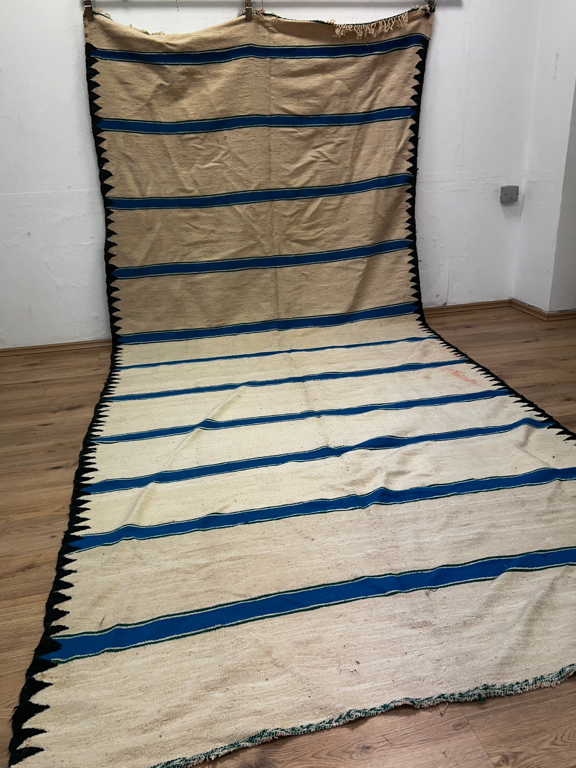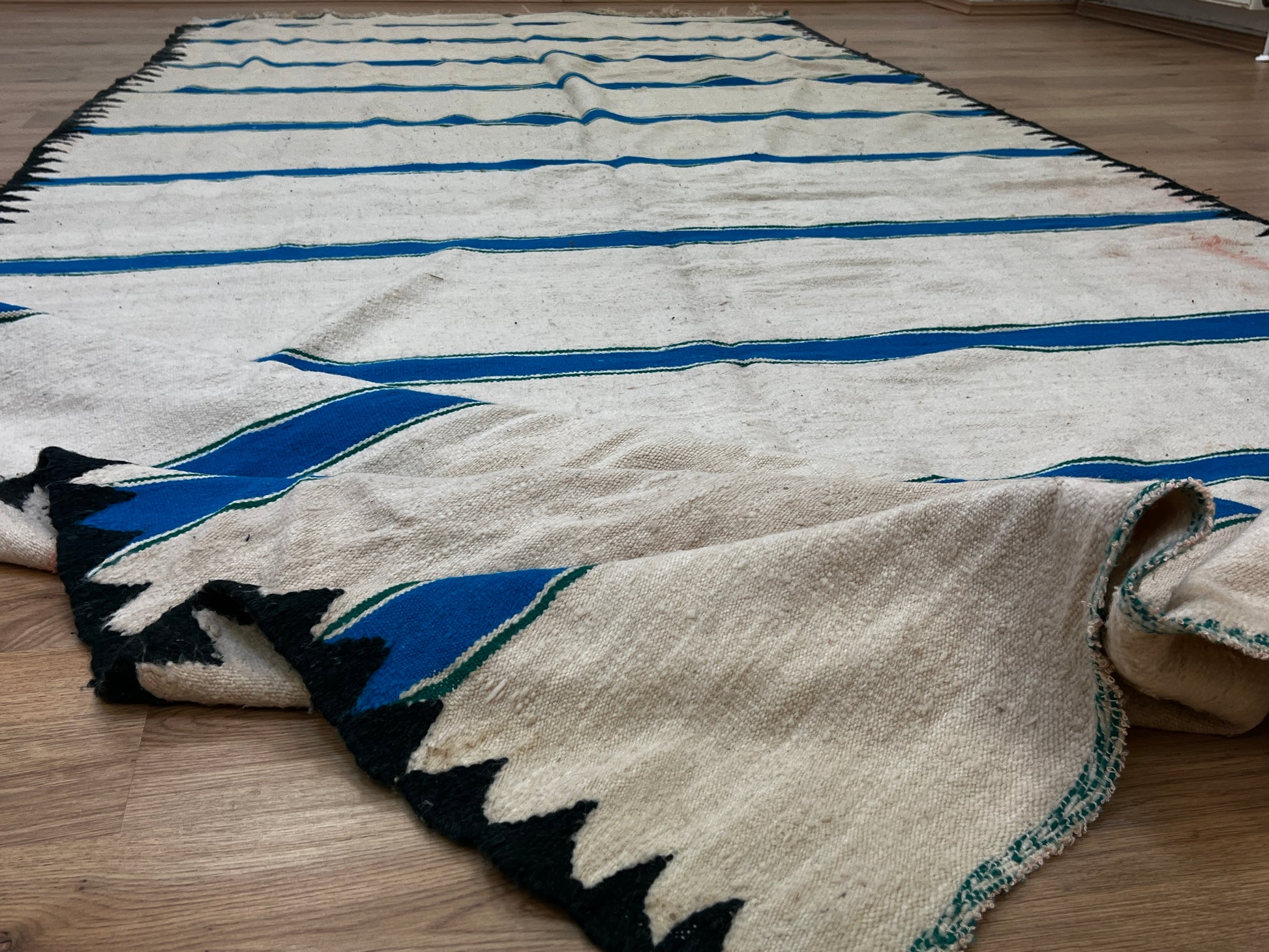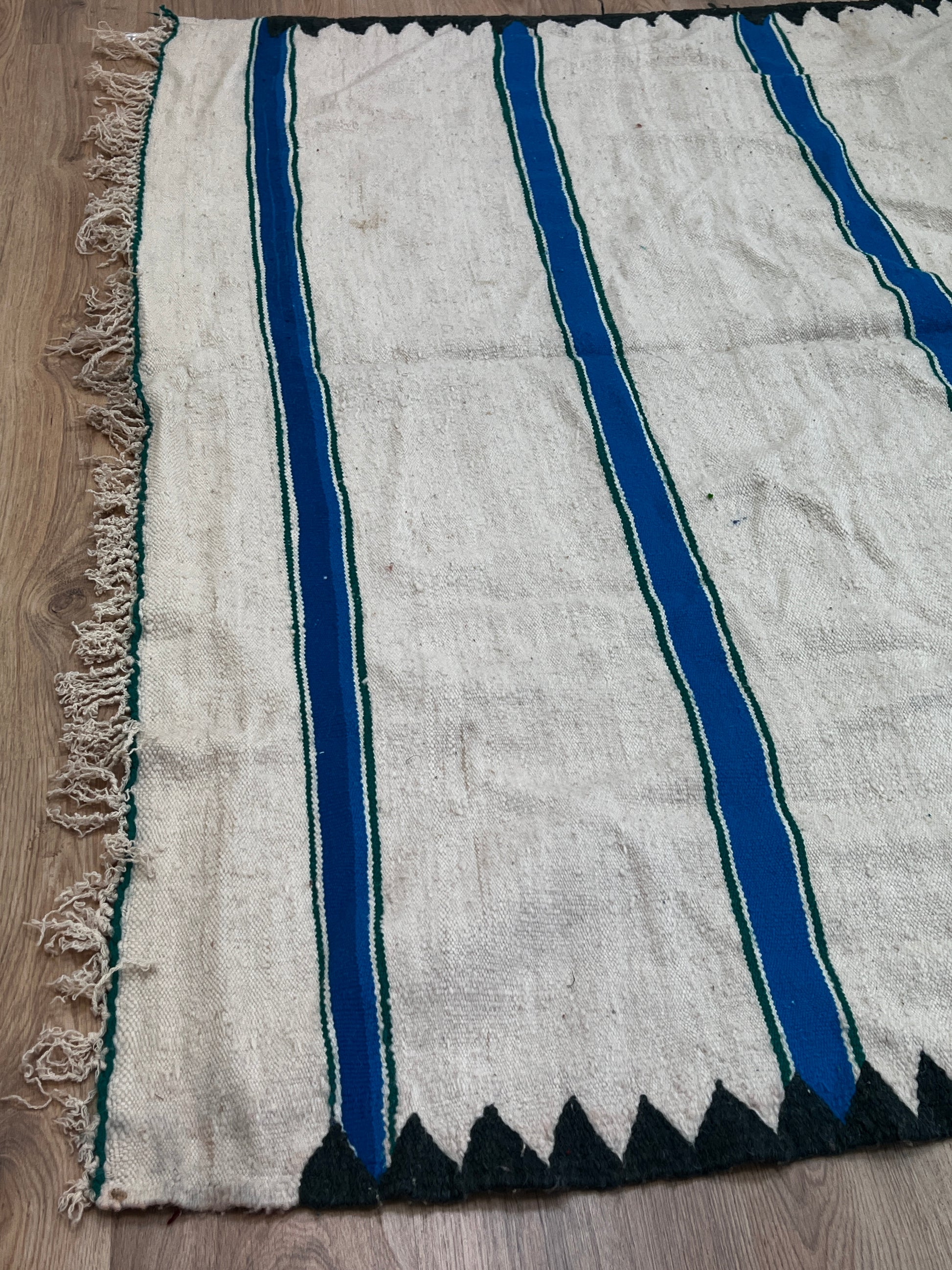 Dieser Kelims ist ein flach gewebter Teppiche aus Schwurwolle. Häufig verfügen die Kelim über feine, geometrisch gewebte Muster. Am häufigsten findet man die schönen Unikate in den unterschiedlichsten Naturfarben. Verwendet wird immer von Hand verarbeitete Schurwolle, gefärbt und ungefärbt. In Marokko wurden Kelims besonders gerne als Wandbehang verwendet aber auch als sehr pflegeleichter und unkomplizierter Teppich für den Boden. Unsere handgefertigten Kelims stammen zum größten Teil aus dem Atlas Gebirge und der vorgelagerten Region, wie etwa Atlas und werden noch innerhalb der Berberfamilien oder in kleinen Kooperativen hergestellt.
