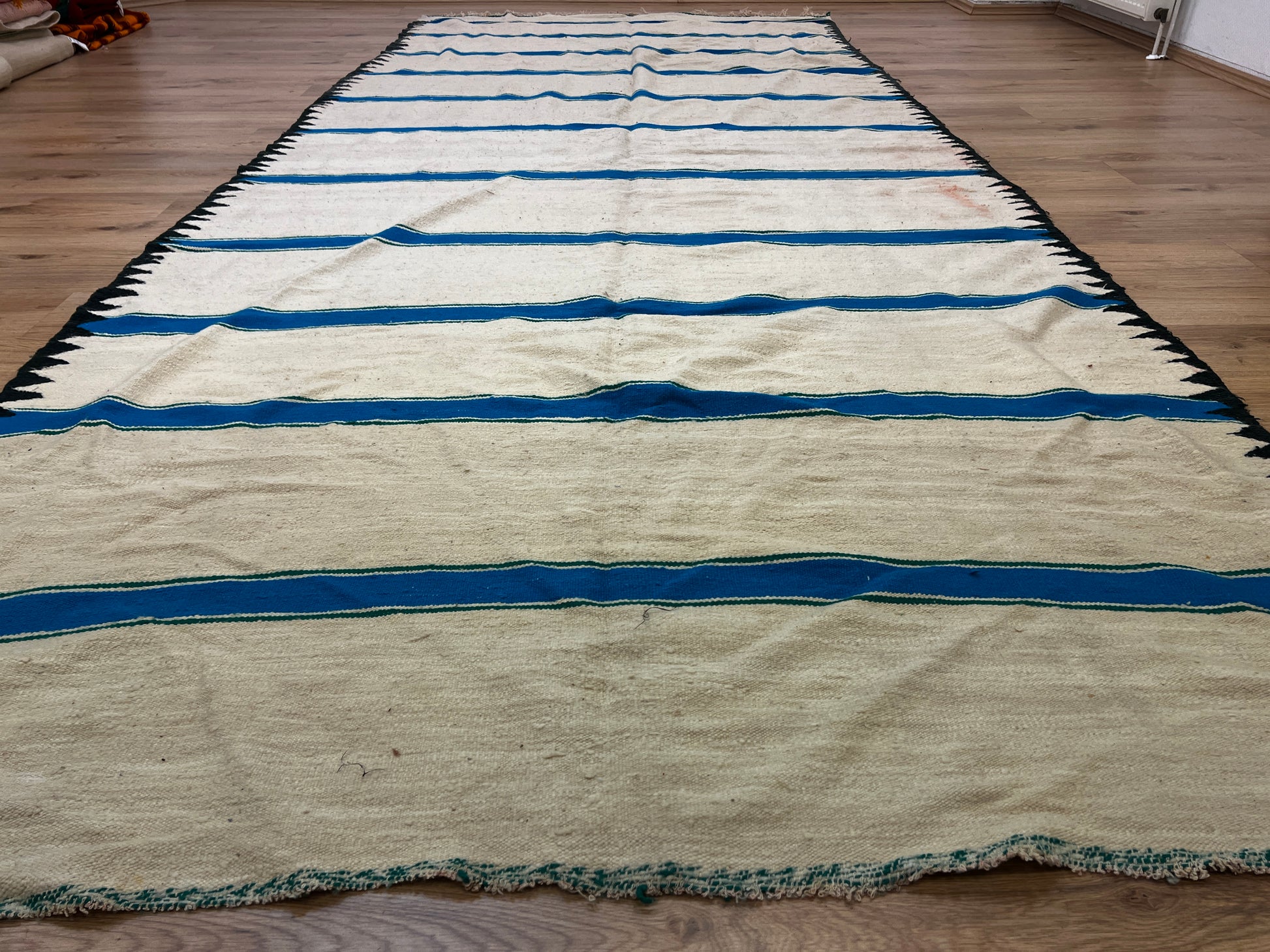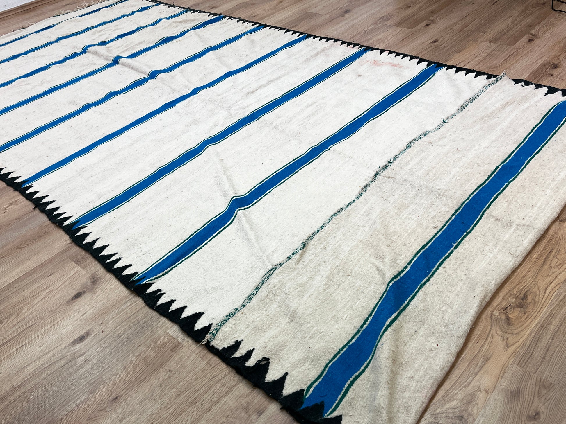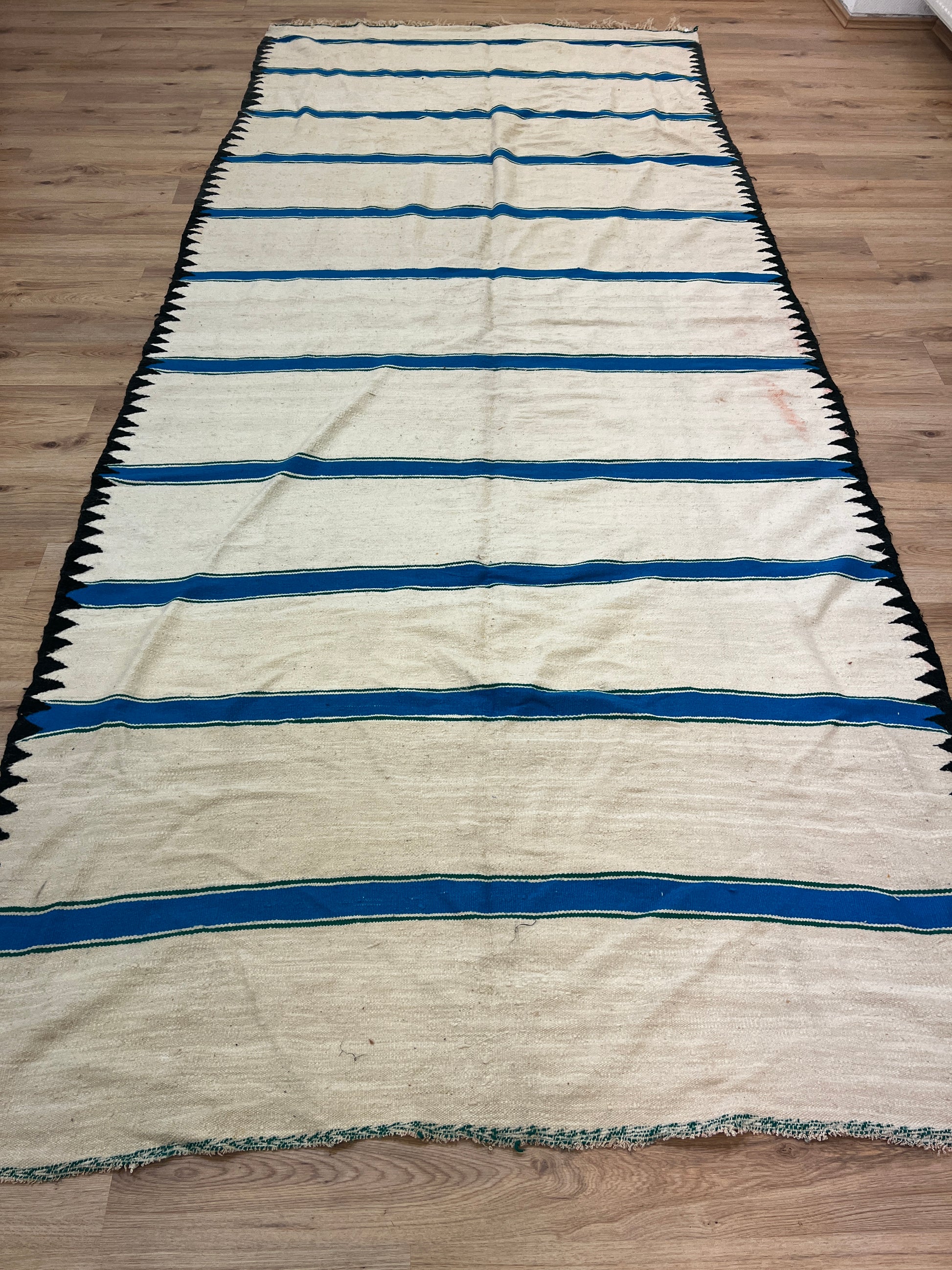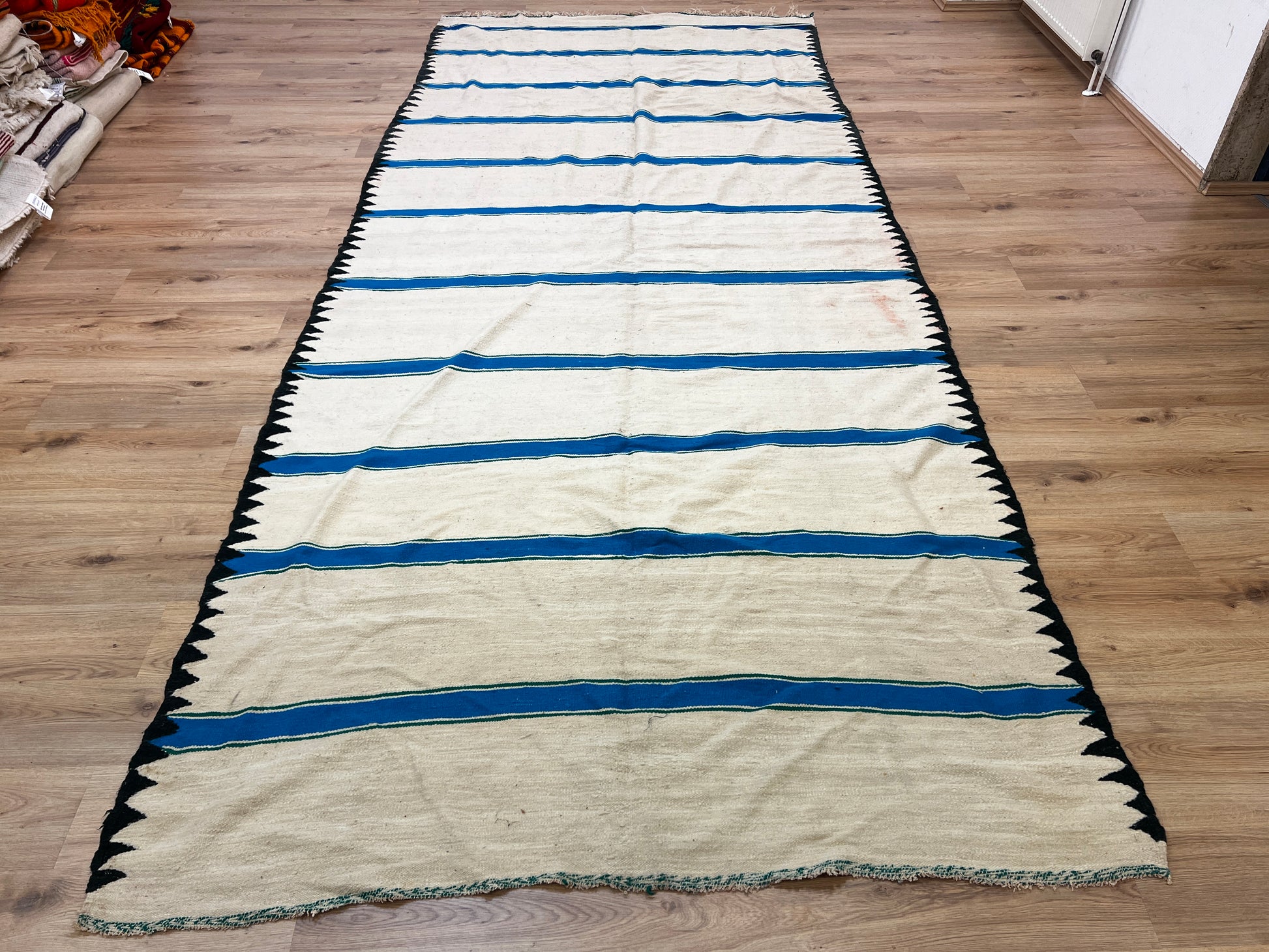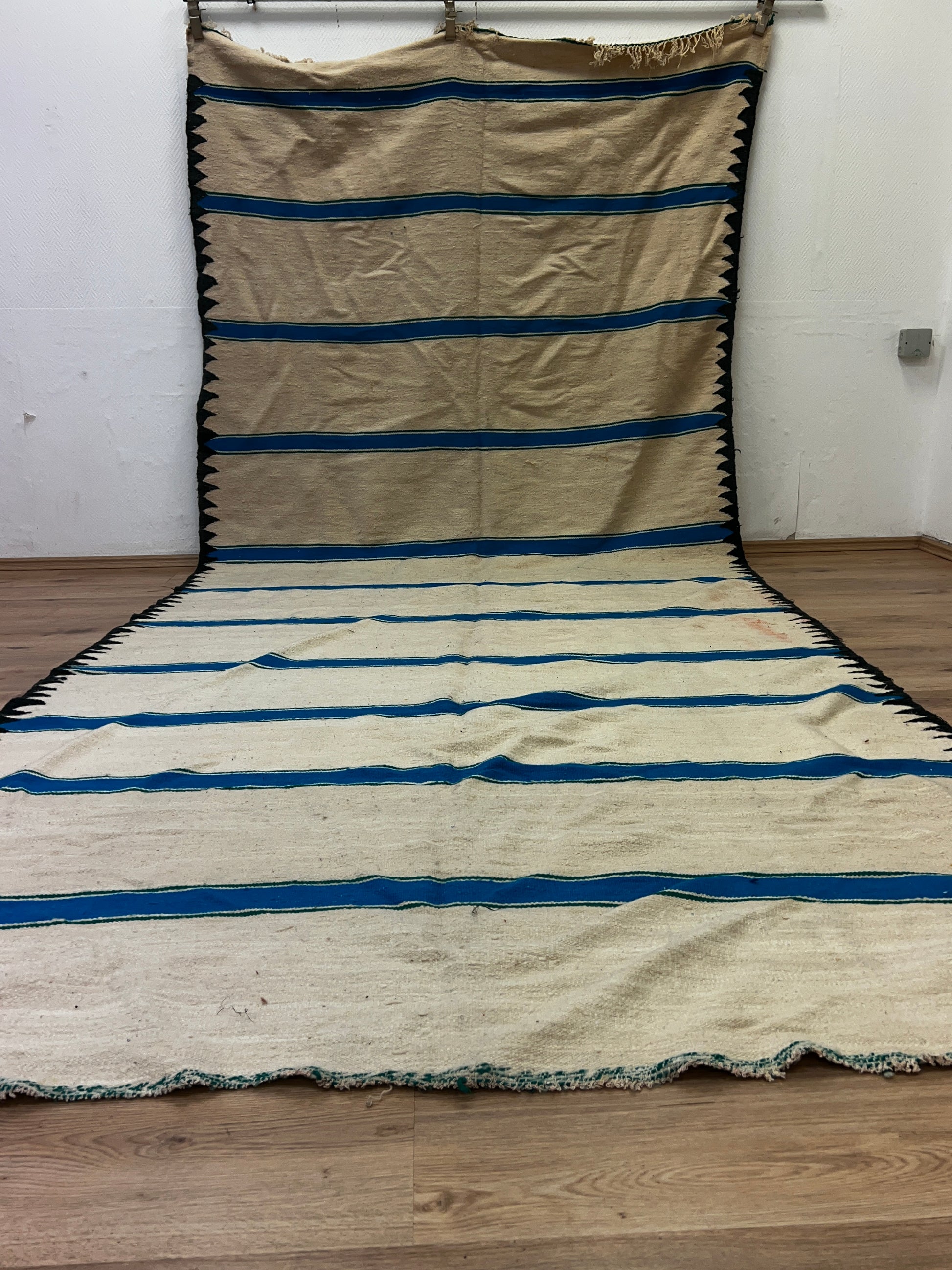 Dieser Kelims ist ein flach gewebter Teppiche aus Schwurwolle. Häufig verfügen die Kelim über feine, geometrisch gewebte Muster. Am häufigsten findet man die schönen Unikate in den unterschiedlichsten Naturfarben. Verwendet wird immer von Hand verarbeitete Schurwolle, gefärbt und ungefärbt. In Marokko wurden Kelims besonders gerne als Wandbehang verwendet aber auch als sehr pflegeleichter und unkomplizierter Teppich für den Boden. Unsere handgefertigten Kelims stammen zum größten Teil aus dem Atlas Gebirge und der vorgelagerten Region, wie etwa Atlas und werden noch innerhalb der Berberfamilien oder in kleinen Kooperativen hergestellt.
