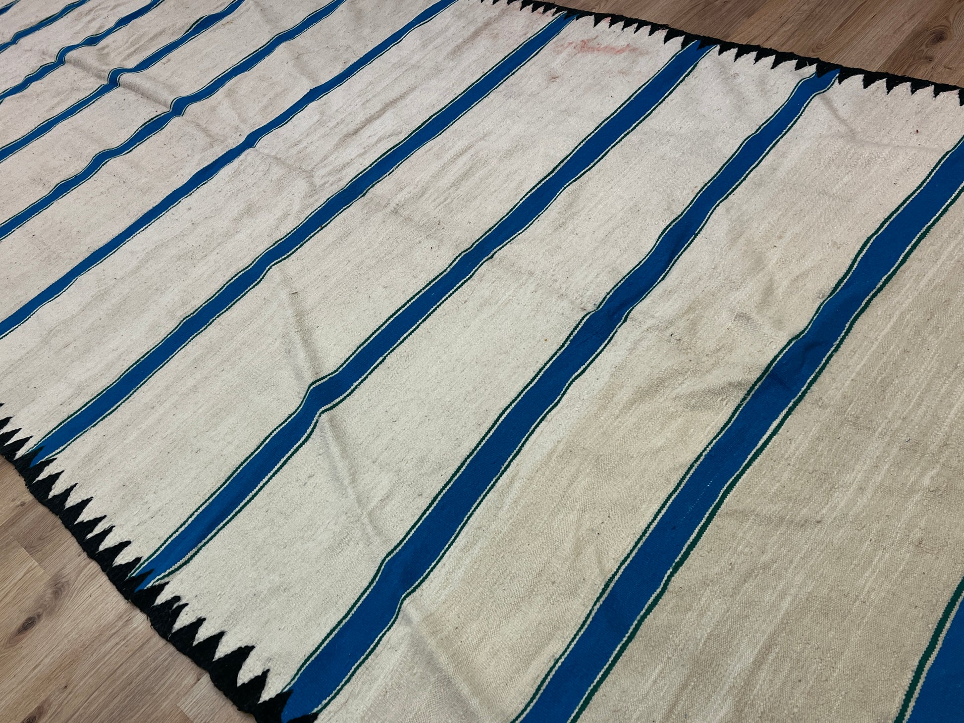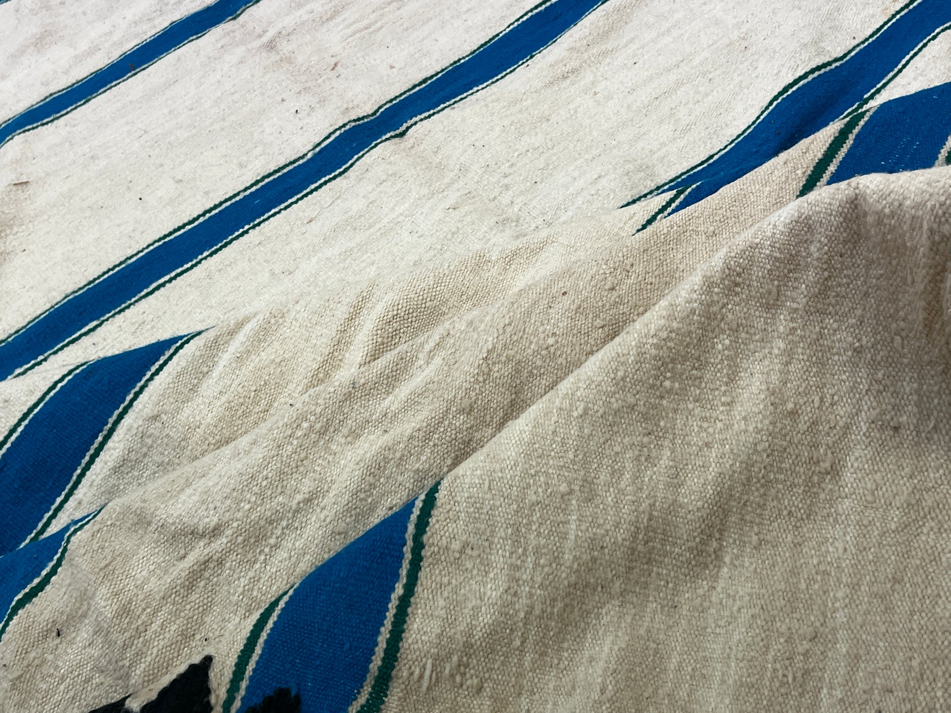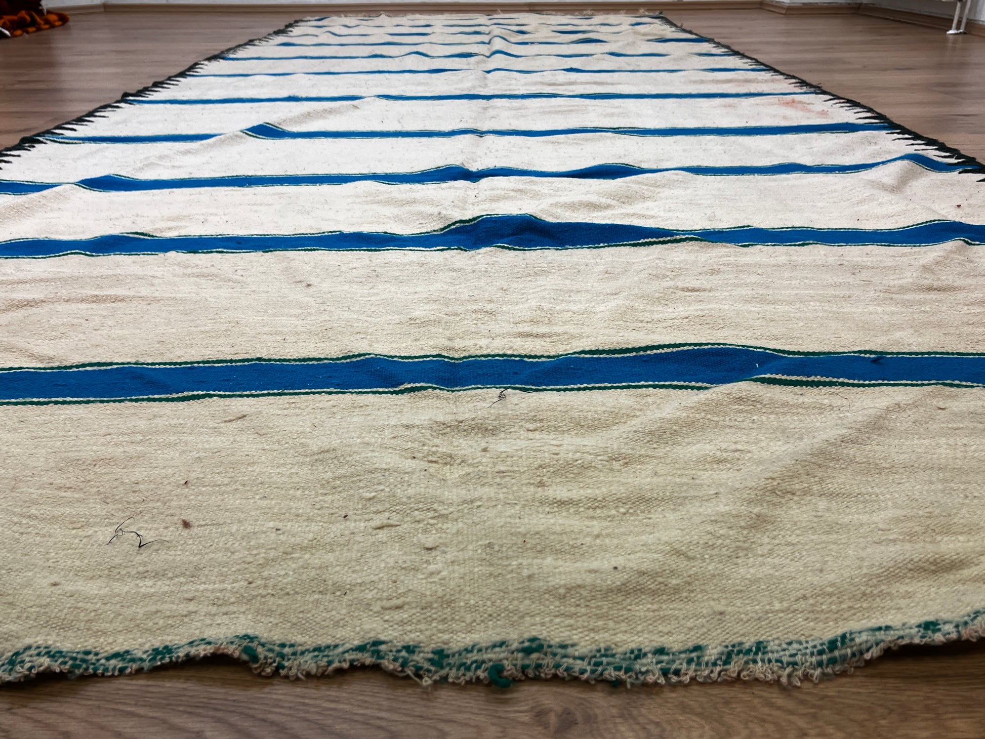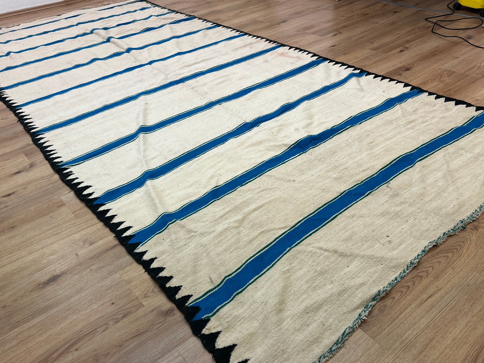 Dieser Kelims ist ein flach gewebter Teppiche aus Schwurwolle. Häufig verfügen die Kelim über feine, geometrisch gewebte Muster. Am häufigsten findet man die schönen Unikate in den unterschiedlichsten Naturfarben. Verwendet wird immer von Hand verarbeitete Schurwolle, gefärbt und ungefärbt. In Marokko wurden Kelims besonders gerne als Wandbehang verwendet aber auch als sehr pflegeleichter und unkomplizierter Teppich für den Boden. Unsere handgefertigten Kelims stammen zum größten Teil aus dem Atlas Gebirge und der vorgelagerten Region, wie etwa Atlas und werden noch innerhalb der Berberfamilien oder in kleinen Kooperativen hergestellt.