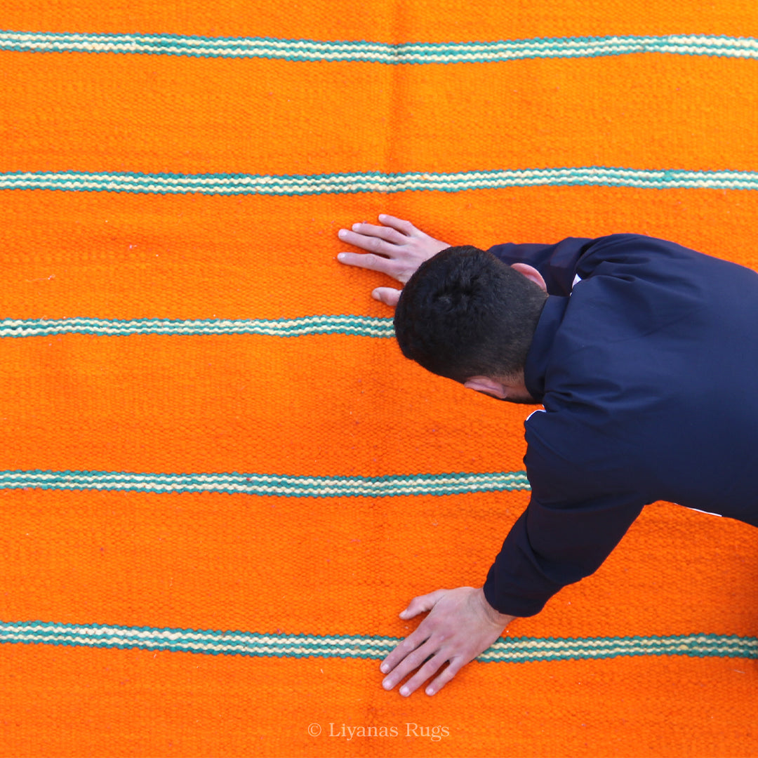 Dieser Kelims ist ein flach gewebter Teppiche aus Schwurwolle. Häufig verfügen die Kelim über feine, geometrisch gewebte Muster. Am häufigsten findet man die schönen Unikate in Blau/Weiß, Schwarz/Weiß oder Beige/Weiß. Verwendet wird immer von Hand verarbeitete Schurwolle, gefärbt und ungefärbt. In Marokko wurden Kelims besonders gerne als Wandbehang verwendet aber auch als sehr pflegeleichter und unkomplizierter Teppich für den Boden. Unsere handgefertigten Kelims stammen zum größten Teil aus dem Atlas Gebirge und der vorgelagerten Region, wie etwa Atlas und werden noch innerhalb der Berberfamilien oder in kleinen Kooperativen hergestellt.