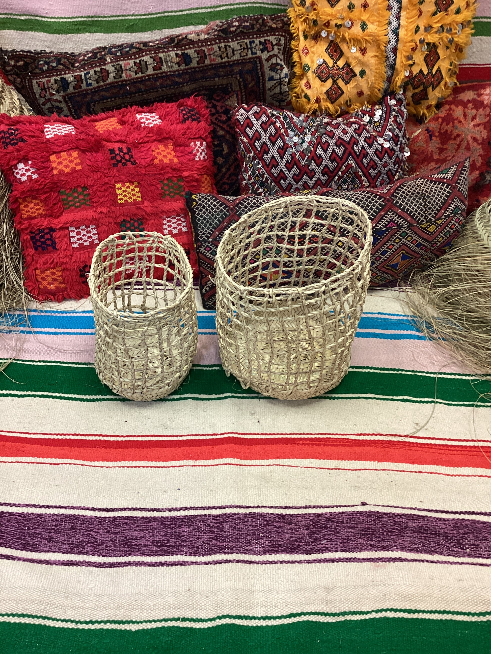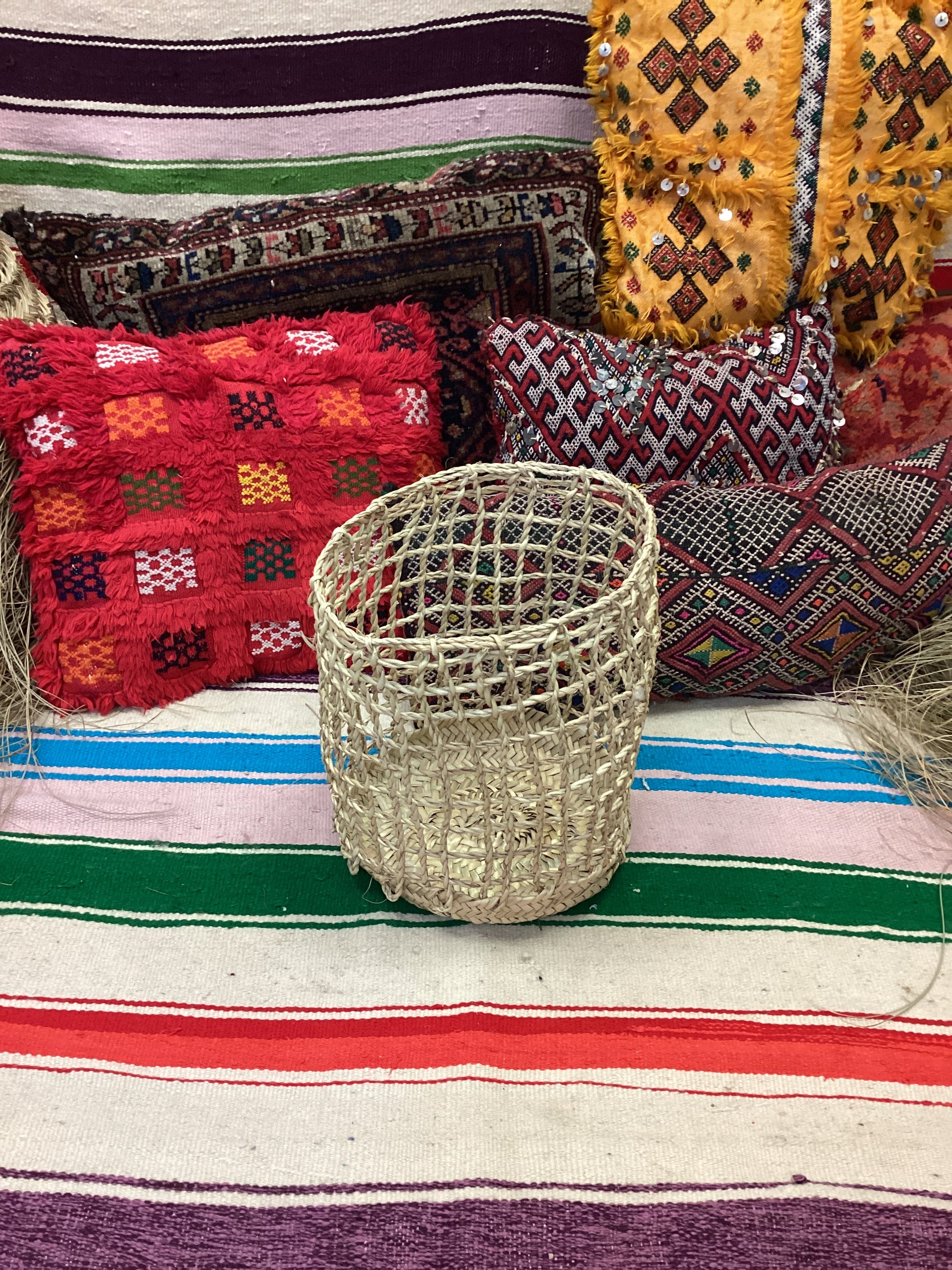 Handgefertigter Tragekorb aus Marokko, 100% Naturmaterialien im berbischen Stil.